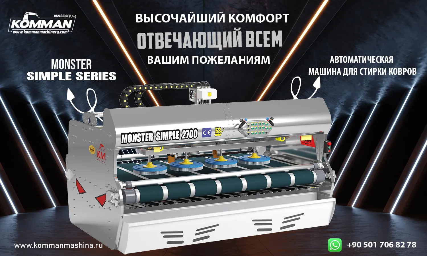 Monster Simple Forceline 2700 — это компактная и эффективная автоматическая установка, оснащенная системой из 4 дисковых щеток. Модель разработана специально для предприятий, стремящихся к высокому качеству стирки при максимальной экономии рабочего пространства и низком энергопотреблении.